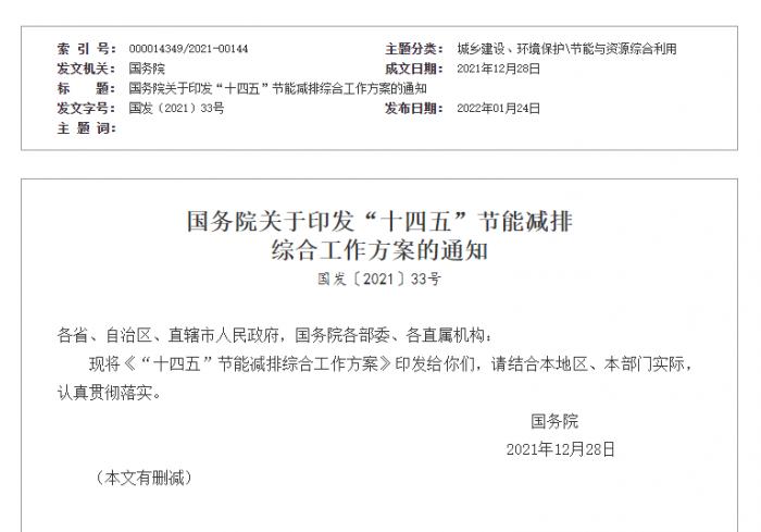 “十四五”节能减排综合工作方案